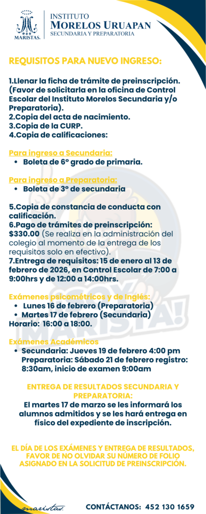 Las autoridades educativas del Instituto Morelos Secundaria y Preparatoria brindan atención directa, orientación y/o canalización, según el caso, ante situaciones que puedan vulnerar la integridad de la comunidad, especialmente, de las y los adolescentes y jóvenes. Con este propósito, ponemos a disposición el siguiente correo institucional: contactoseguro@imu.maristas.edu.mx